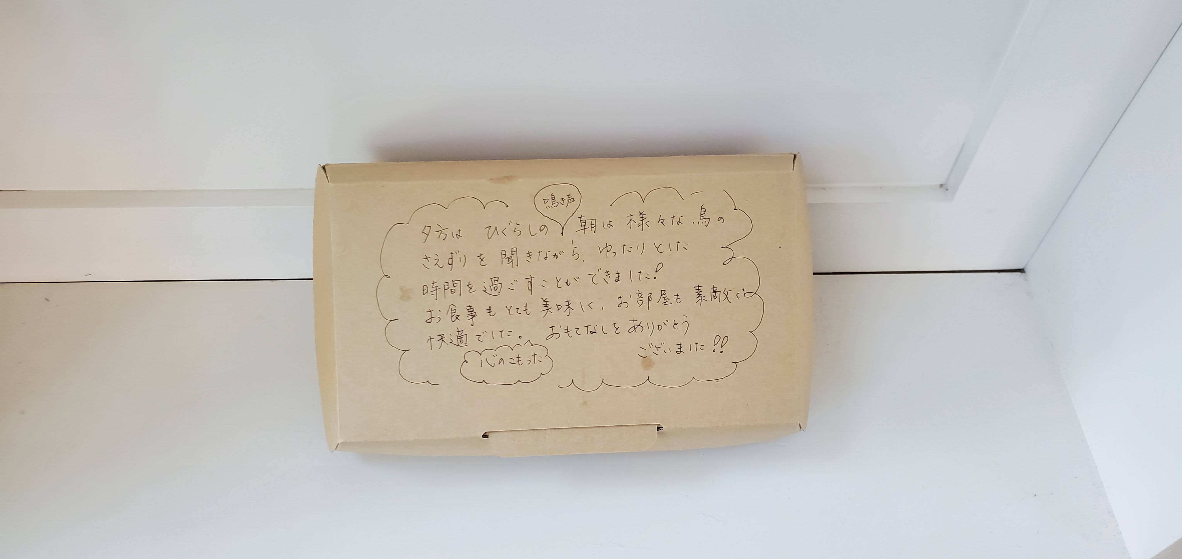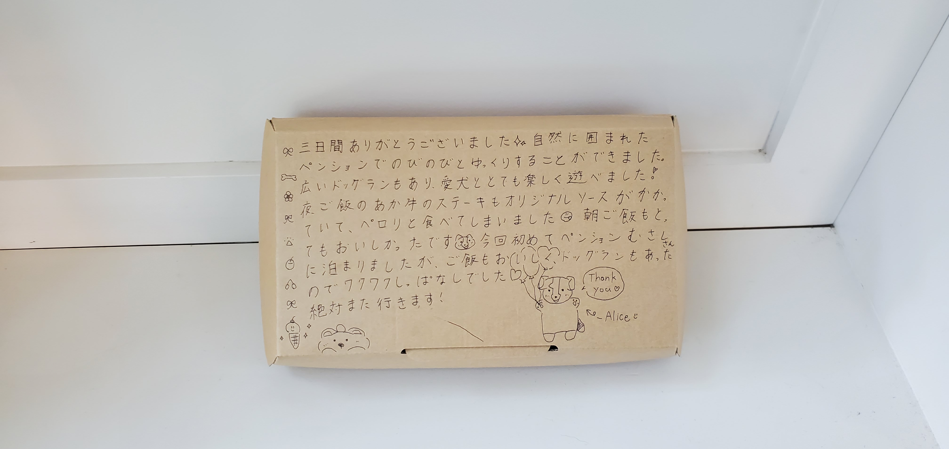 さて、本日チェックアウトのお客様2泊してくださってメッセージまで頂きました