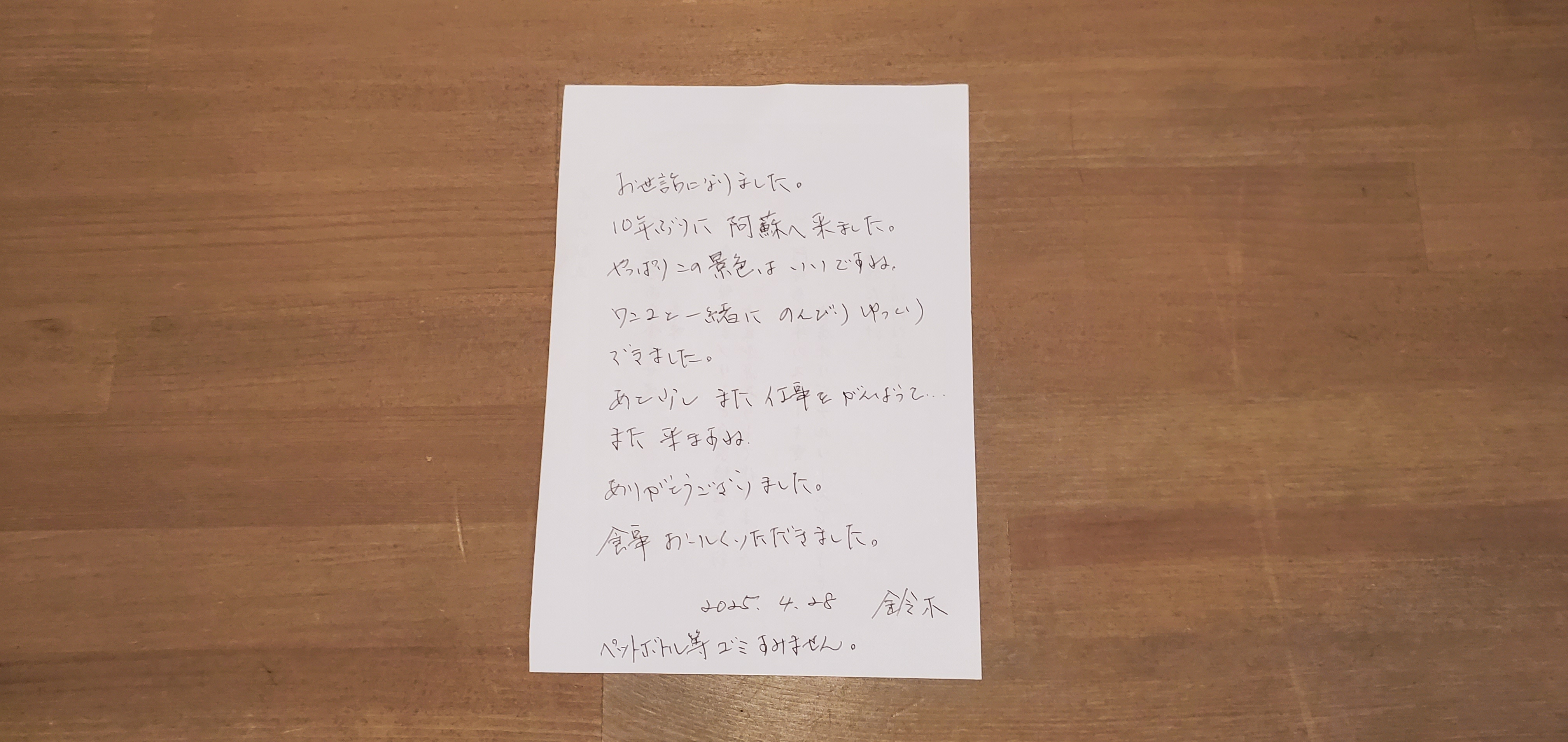 さて、本日チェックアウトのお客様またまたメッセージ頂きましたよ✨遠くからありがとうございました~⤴️